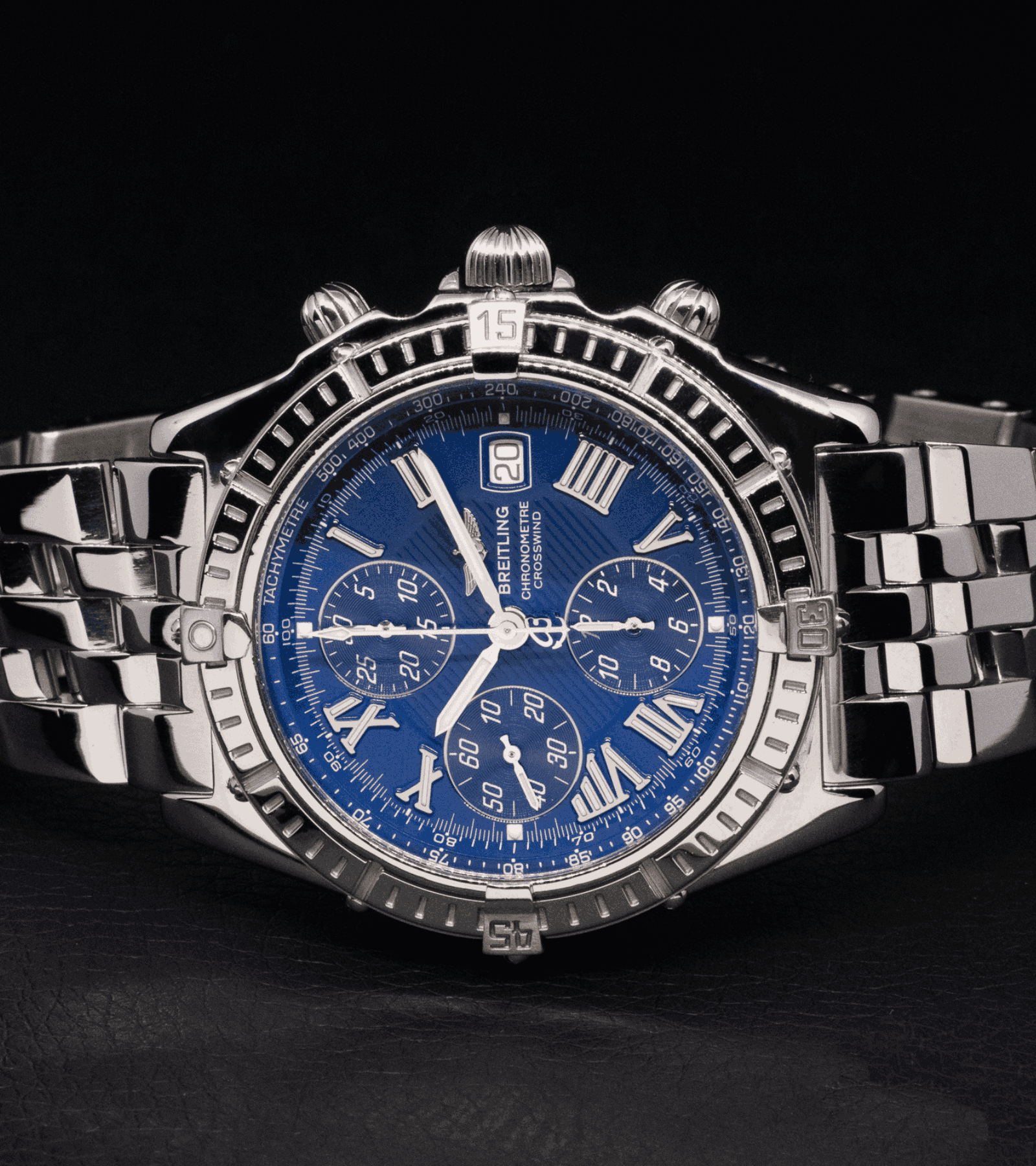 Breitling Crosswind Chronograph , con brazalete de acero, esfera azul y cristal de zafiro. 43 mm, bisel de acero y movimiento automático. Garantía de 2 años.