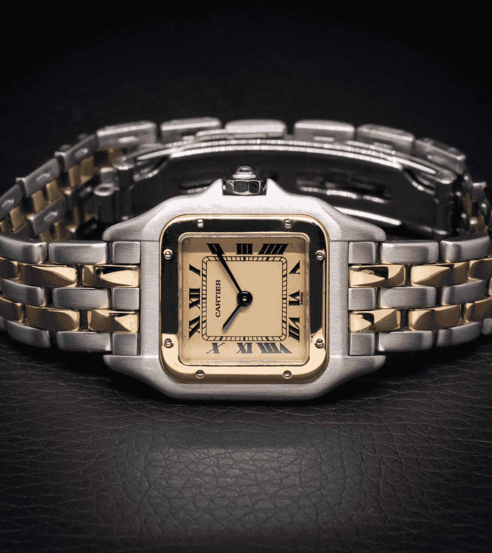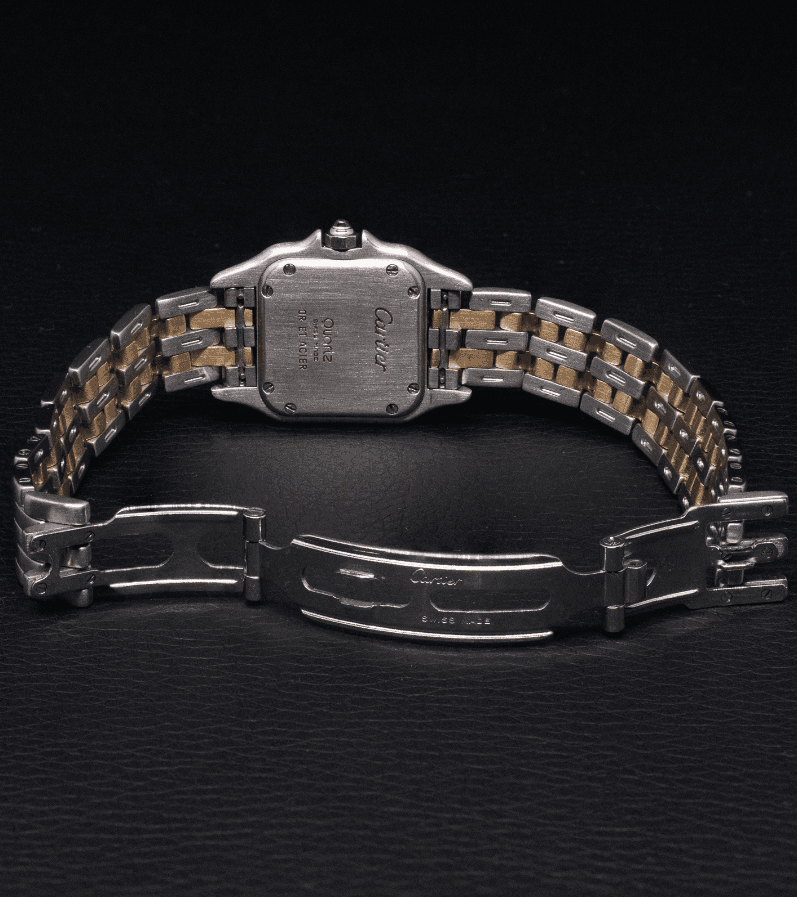 Cartier Panthère, con brazalete en acero y oro, esfera blanca y cristal de zafiro. 22 X 30 mm, bisel de oro y movimiento de cuarzo. Garantía de 2 años.