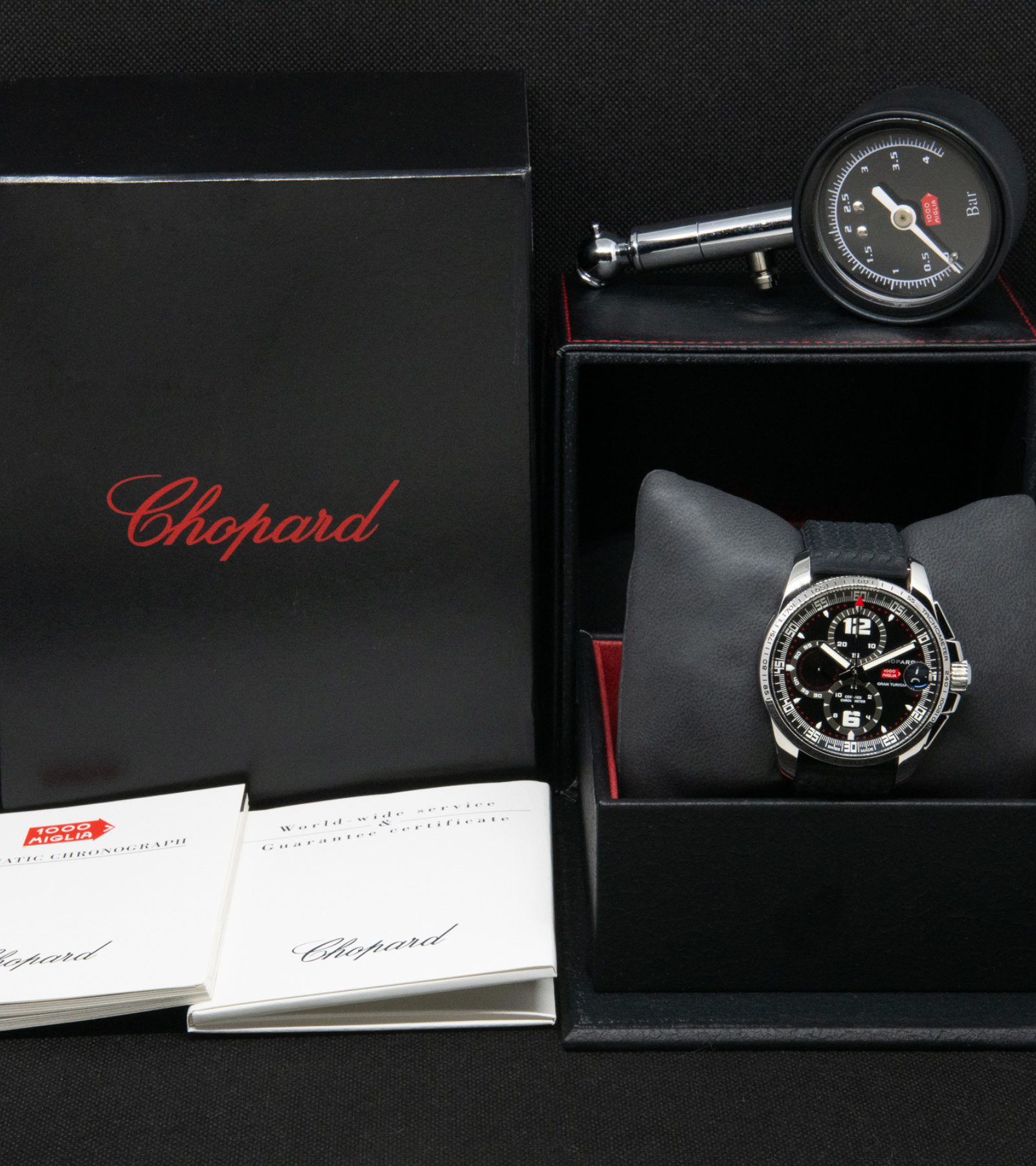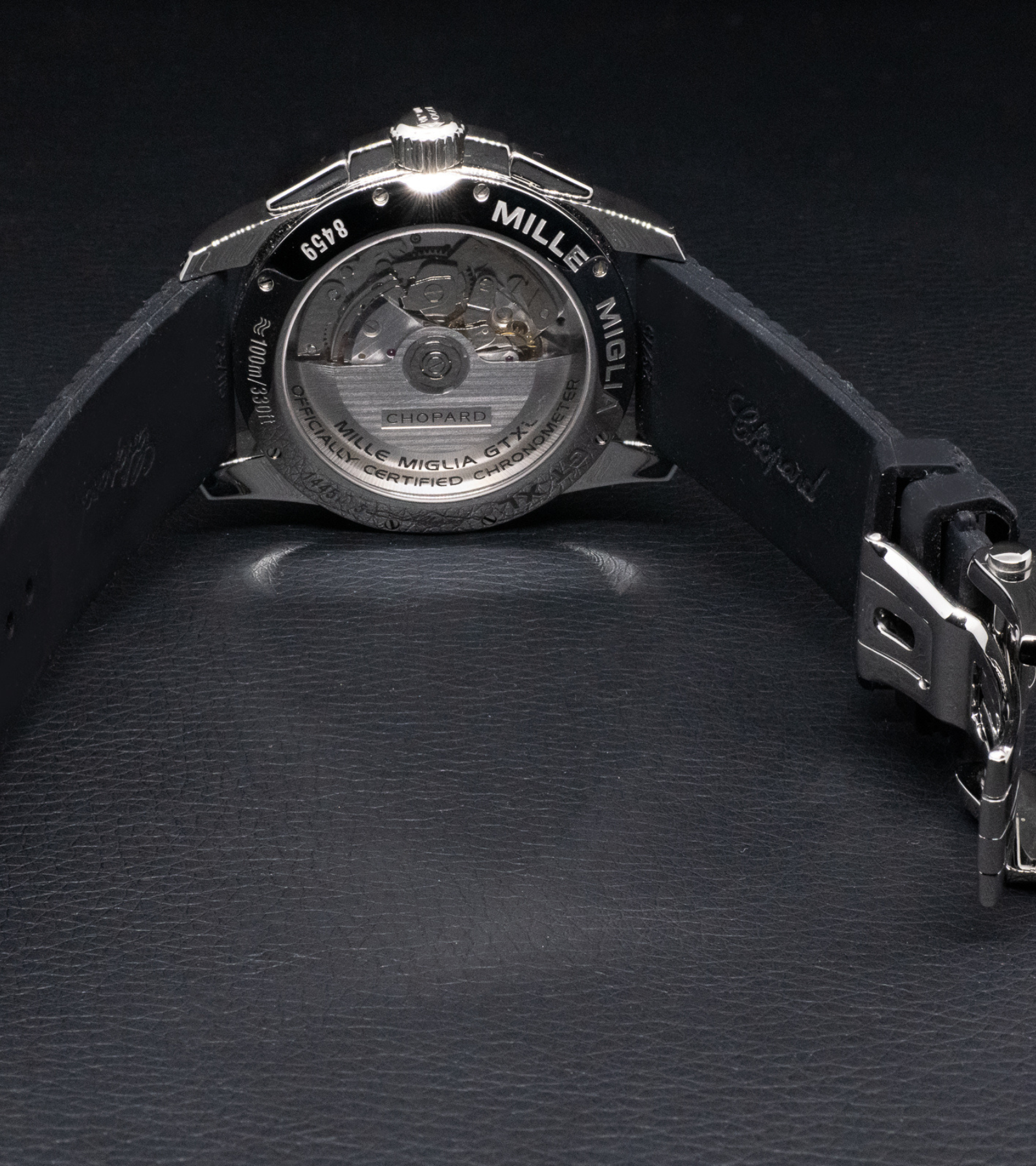 Chopard Mille Miglia , con brazalete de caucho, esfera negra y cristal de zafiro. 44 mm, bisel de acero y movimiento automático. Garantía de 2 años.