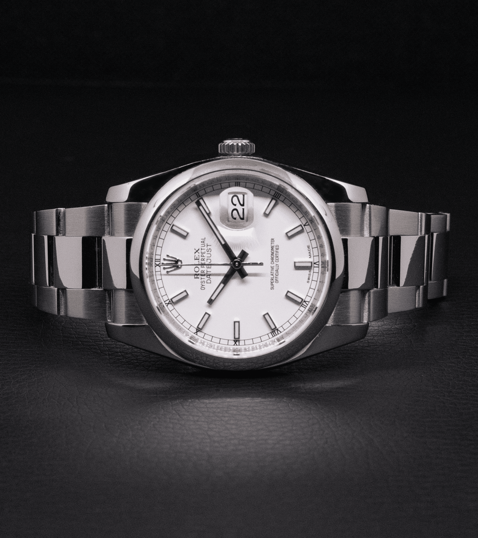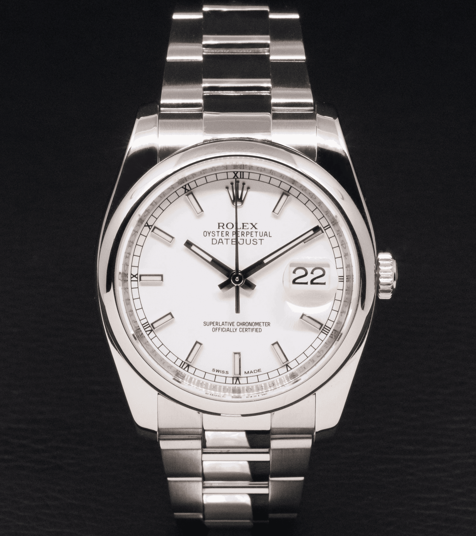 Rolex Datejust 36, con brazalete en acero, esfera blanca y cristal de zafiro. 36 mm, bisel de acero y movimiento automático. Garantía de 2 años.